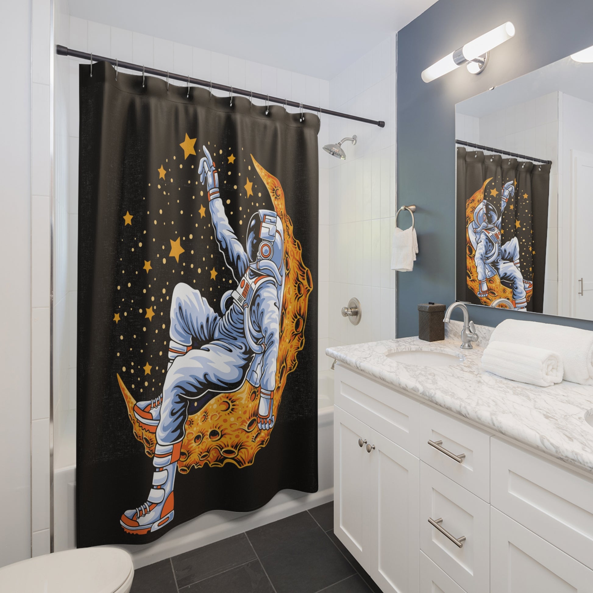 Light On The Moon Space Blend Shower Curtains